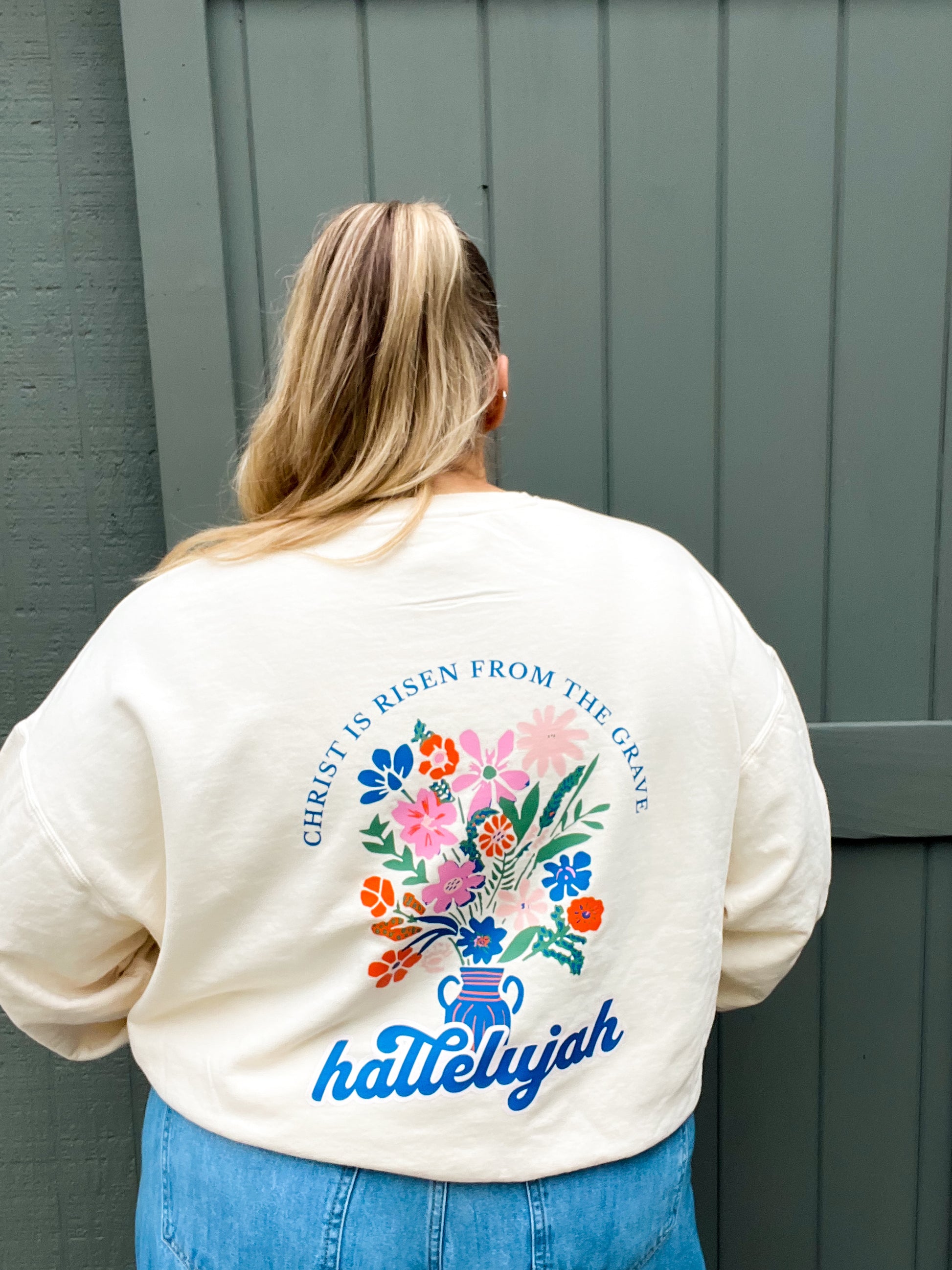 Our Christ is Risen Lightweight Crewneck is hand printed on a unisex Comfort Colors lightweight crewneck. 100% cotton. Fit is true to size. Size up for an oversized fit!