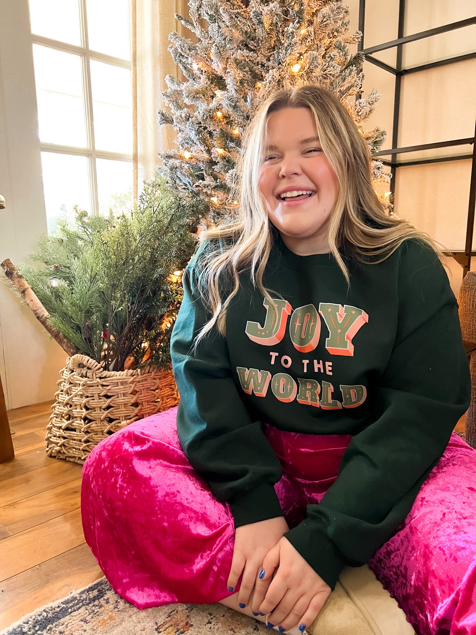 Joy to the World is hand printed in CA on the perfect 90% Cotton and10% Polyester crewneck sweatshirt. True to size and pre shrunk.