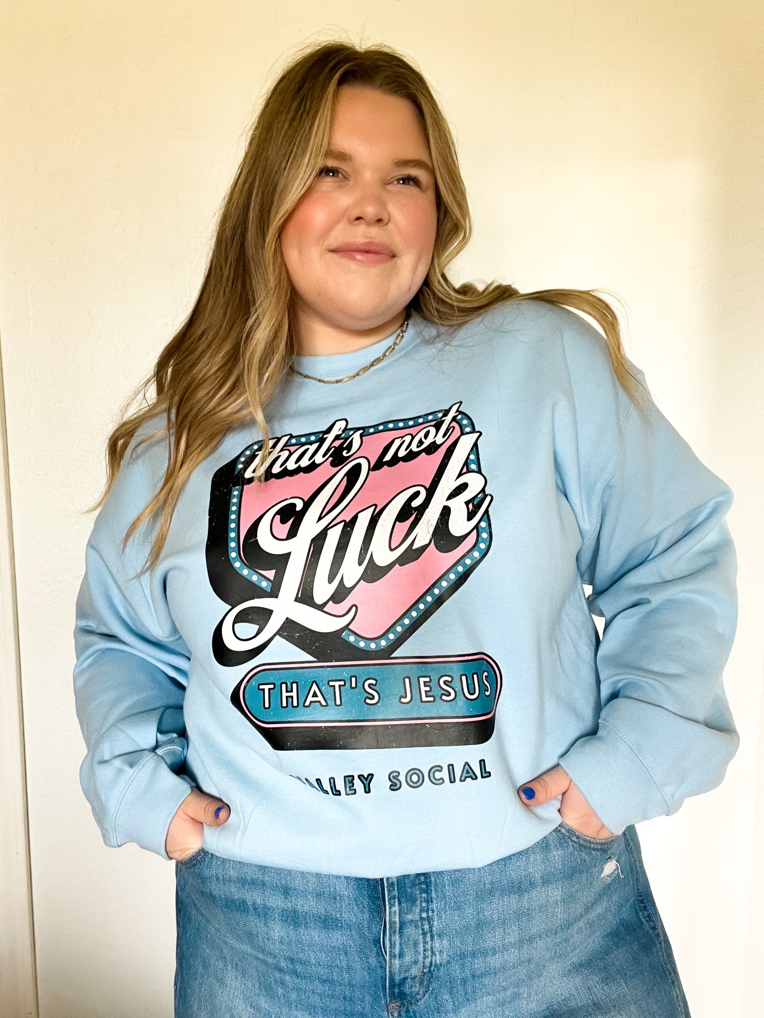 That's Not Luck is hand printed in CA on the perfect 90% Cotton and10% Polyester crewneck sweatshirt. True to size and pre shrunk.